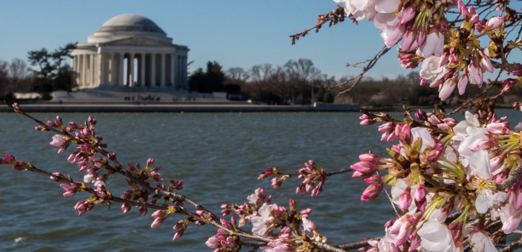 Fast forward to mid-March of this year, and what do you know – along comes another winter storm, just as we’re eagerly awaiting the cherry blossoms. While a coating of wet and heavy snow is unusual for late March, thankfully the cherry blossoms were not far along enough in their development for the storm to ruin the arrival of peak bloom. Peak bloom is defined as when more than 70 percent of the nearly 3,000 Yoshino cherry trees on the Tidal Basin are blossoming.