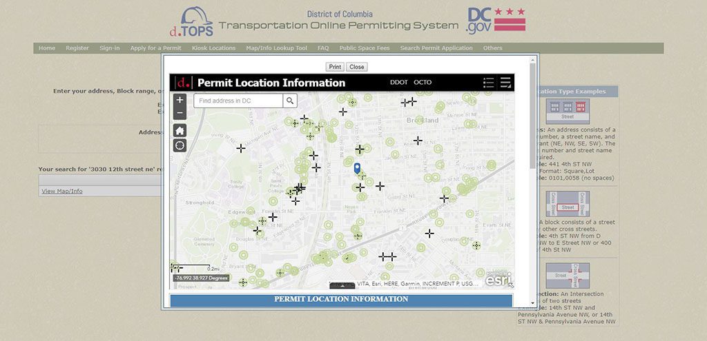 But there is another, lesser-known but equally useful, online tool called TOPS – the DC Transportation Online Permitting System – which comes in handy for those (homeowners, business owners, or contractors) looking to either: