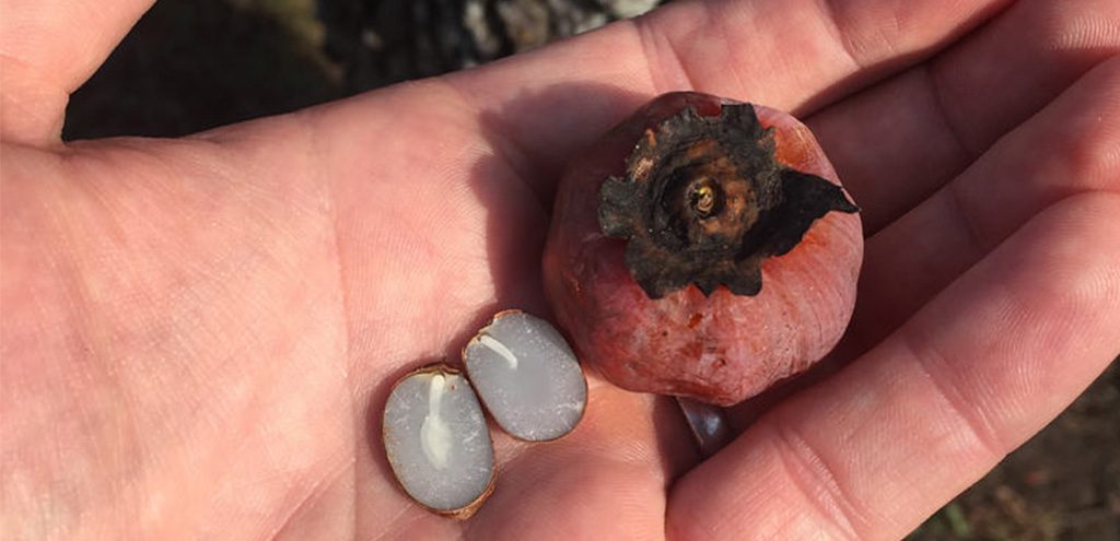 When a persimmon seed is cut open, the white marking inside reveals the following information about the coming winter: If it’s shaped like a knife, winter’s winds will be biting and the season will be cold. If it’s shaped like a fork, expect a relatively average winter. If it looks like a spoon, expect to shovel plenty of snow.
