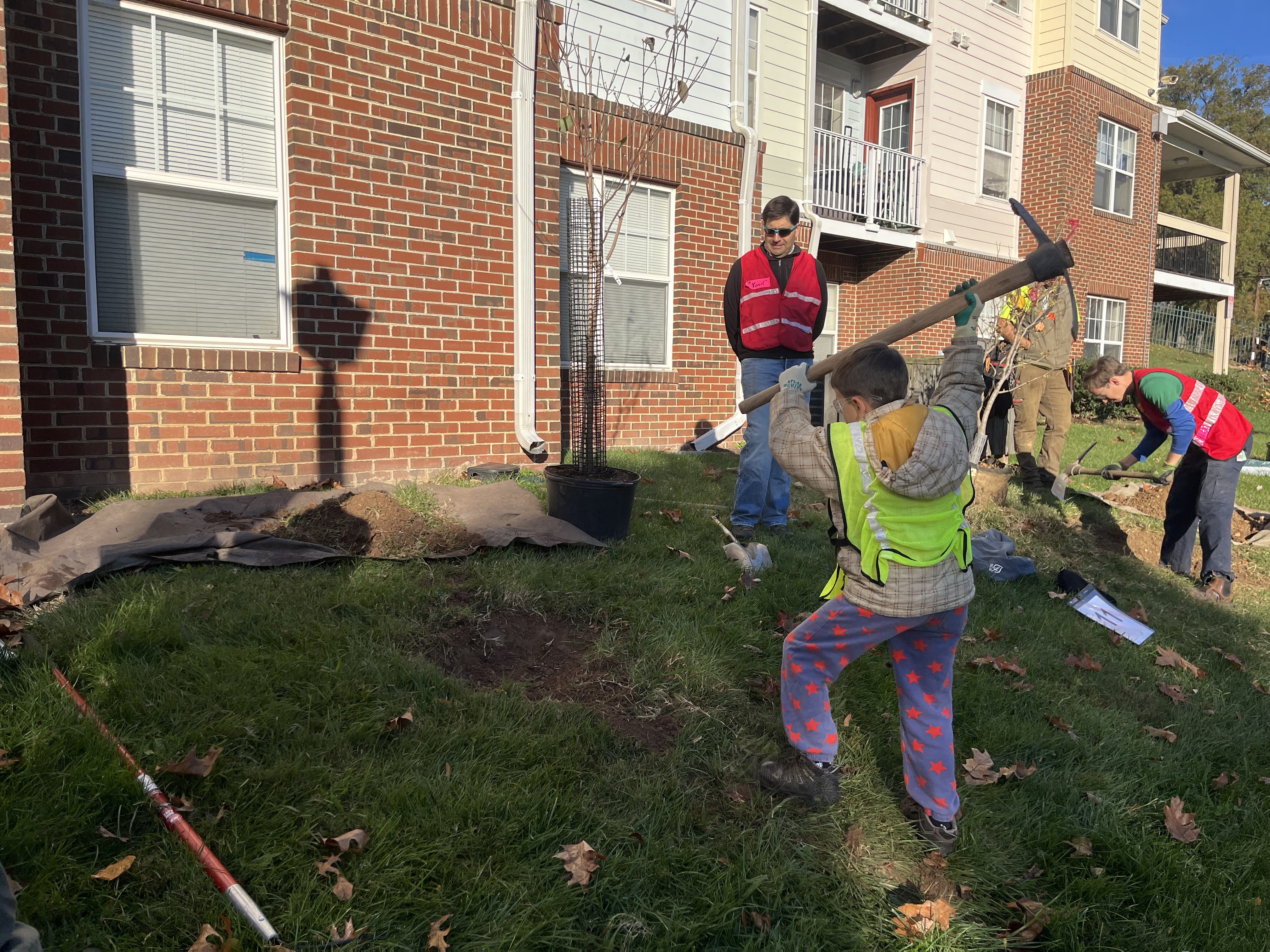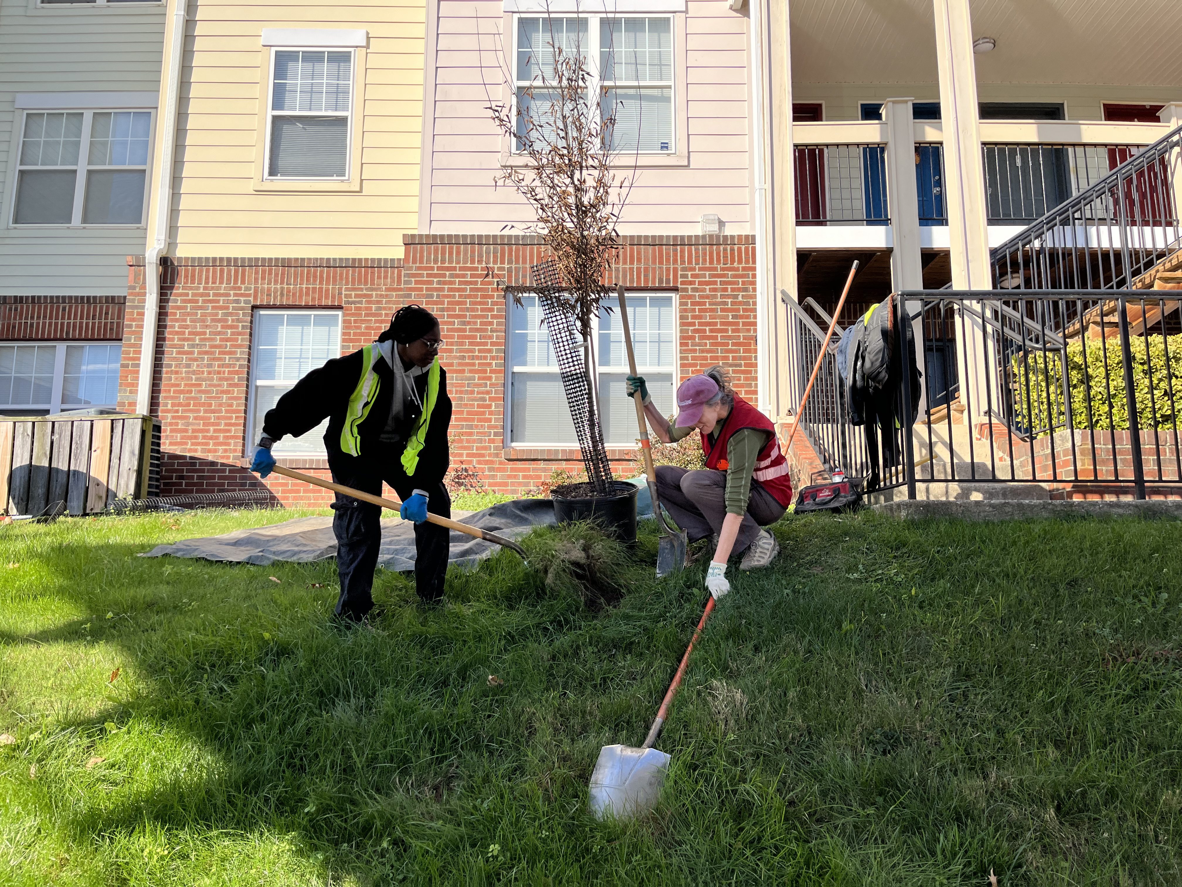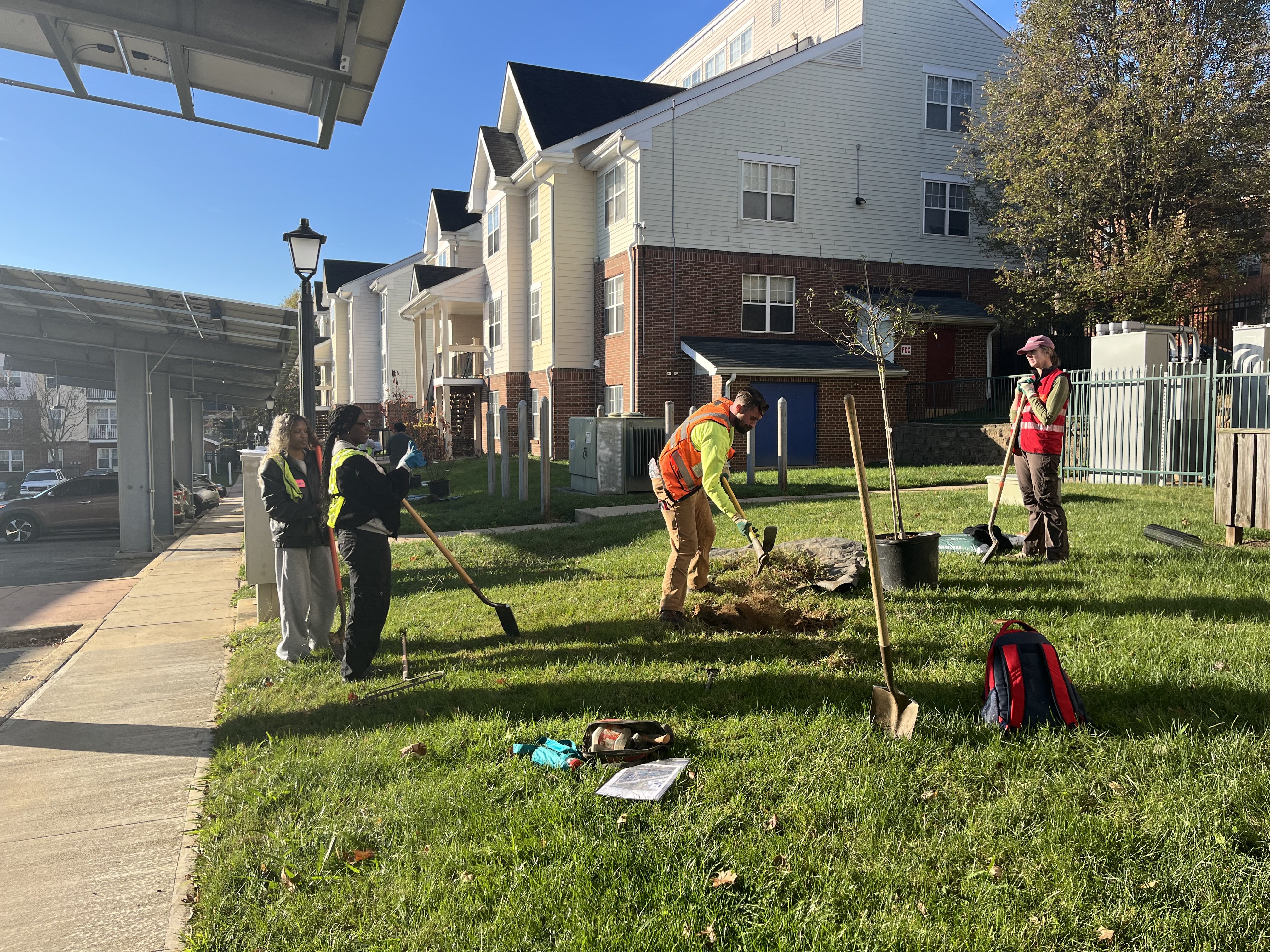 In a collaborative effort with the residents of Royal Courts Apartments, Casey Trees turned a housing community into a greener and more sustainable space. Volunteers joined forces with apartment residents to plant trees in designated areas, fostering a stronger connection between the community and the environment. The addition of new trees will enhance the quality of life for residents, reduce urban heat island effects, and promote a healthier living environment.