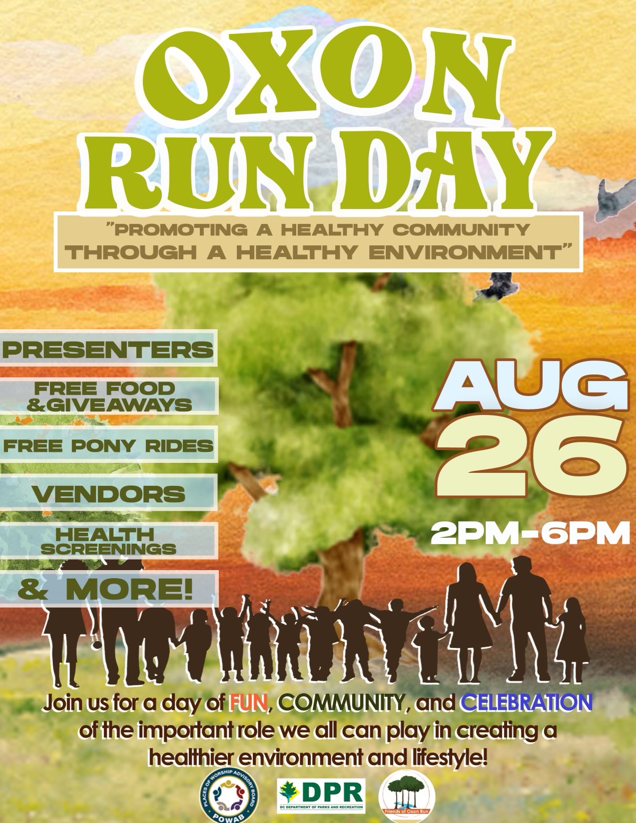 Come out for a fun family day with Friends of Oxon Run and Valley Avenue for this year’s Community Day Health and Wellness Fair, “Oxon Run Day”. Join us for a day of fun, community, and celebration of the important role we all can play in creating a healthier environment and lifestyle.