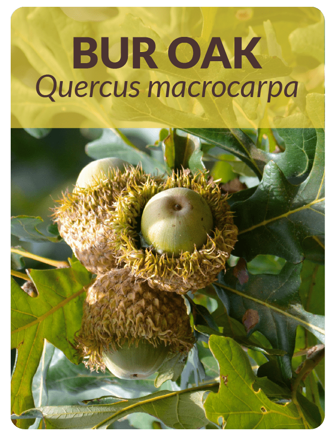 The bur oak is an incredibly distinct, almost prehistoric-looking shade tree with dark, thick, ornate bark resembling wings adorning its trunk and branches. This tough tree tolerates poor air and soil conditions. Native Americans used its inner bark for varied medicinal purposes.