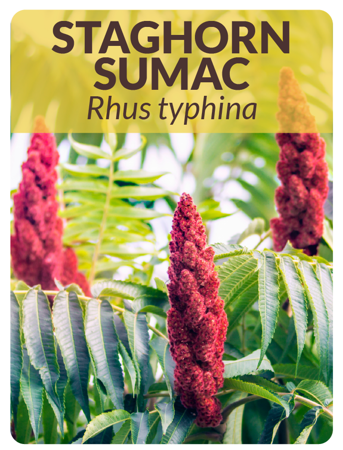 The staghorn sumac is the largest of the North American sumacs. It is native to woodland edges, roadsides, railroad embankments and stream/swamp margins. It is particularly noted for the reddish-brown hairs that cover the young branchlets in somewhat the same way that velvet covers the horns of a stag (male deer), hence the common name. It is also noted for its ornamental fruiting clusters and excellent fall foliage color.