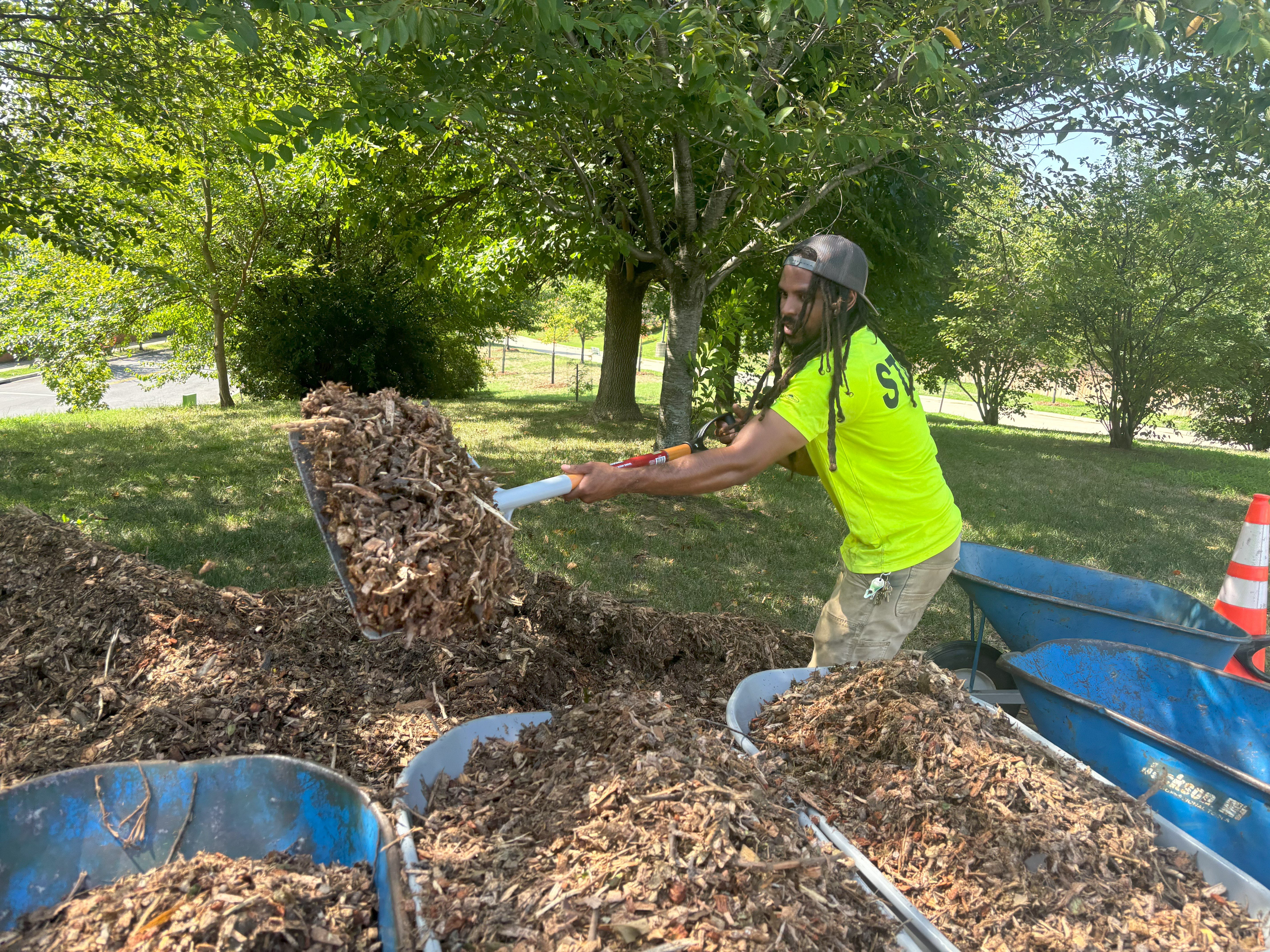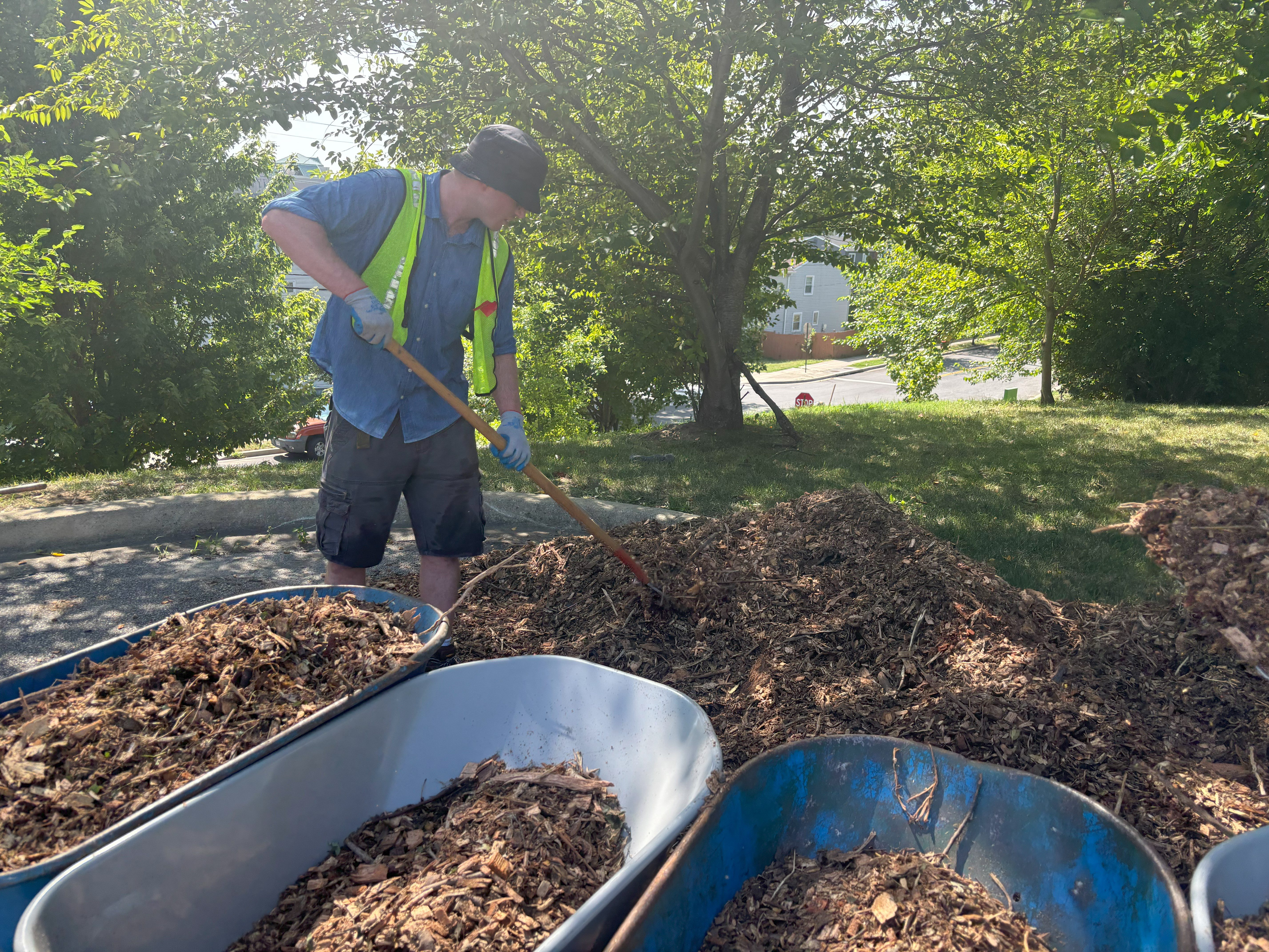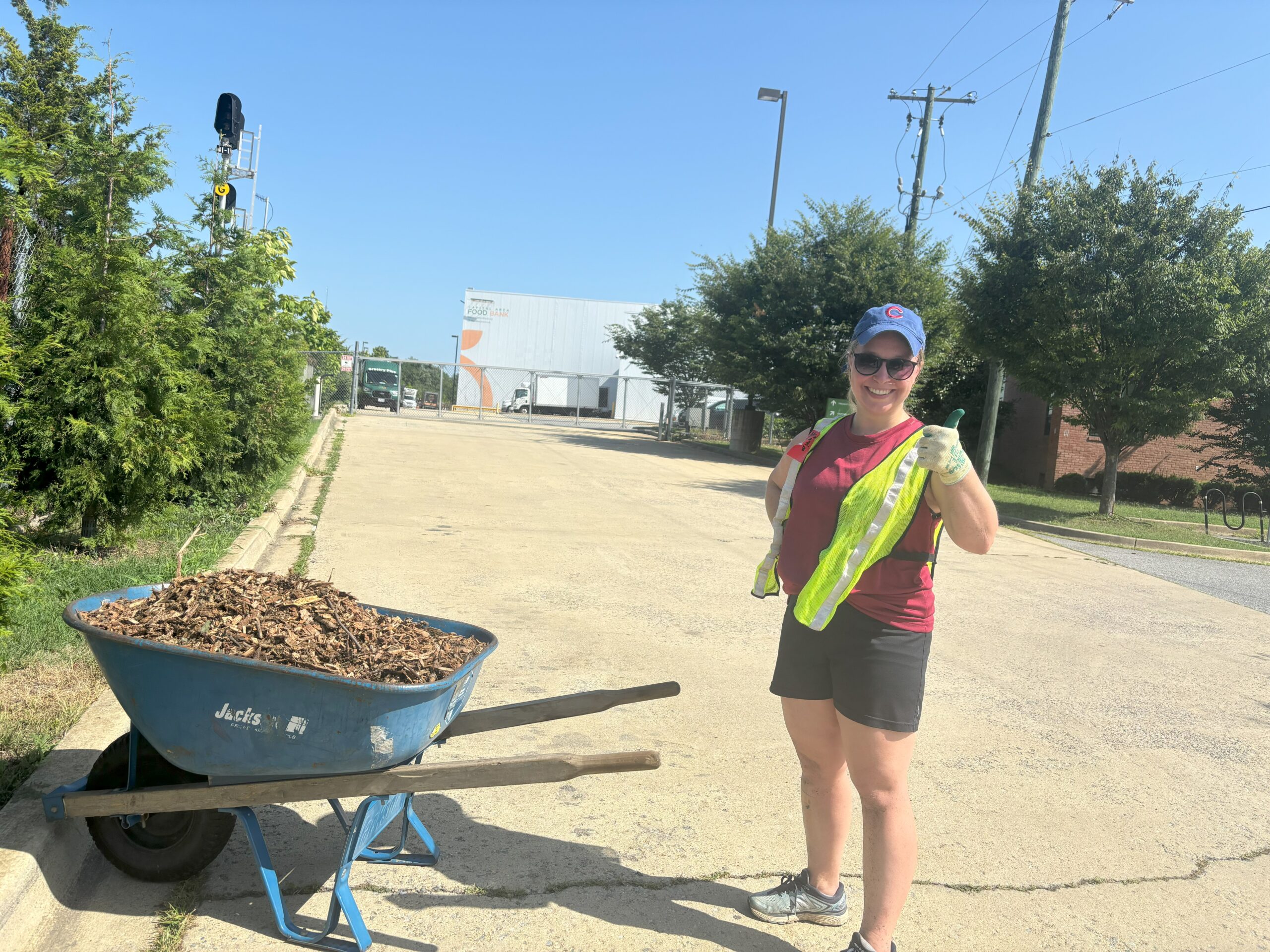 Recently, we held a tree care event with our friends over at CAFB, an essential activity during these hot summer months. Just as CAFB nourishes bodies, our work ensures that the trees planted on their grounds stay healthy and strong, providing shade and environmental benefits for years to come. Volunteers from both organizations joined forces to mulch, water, and care for the trees—crucial steps in ensuring their survival through the summer heat.