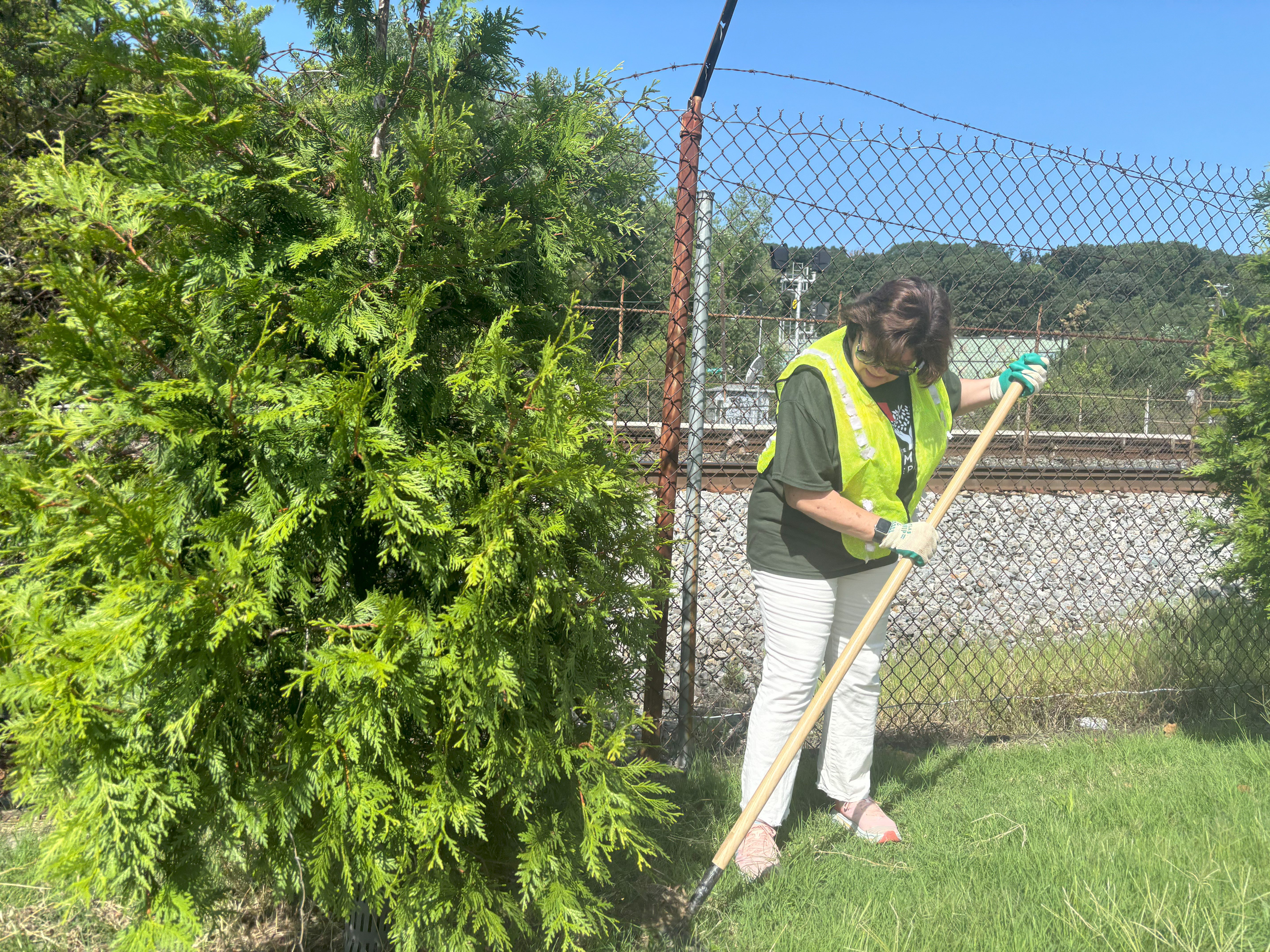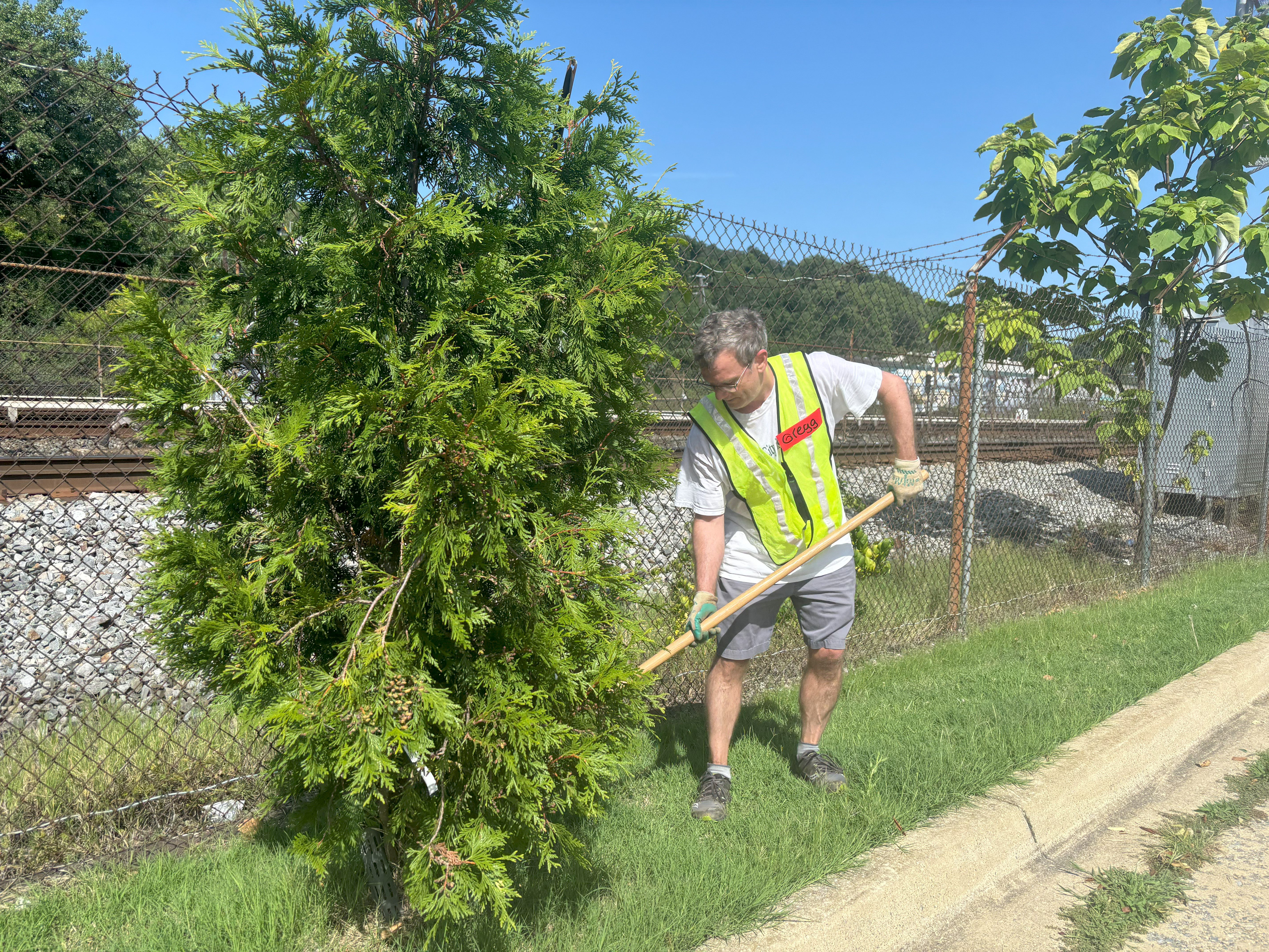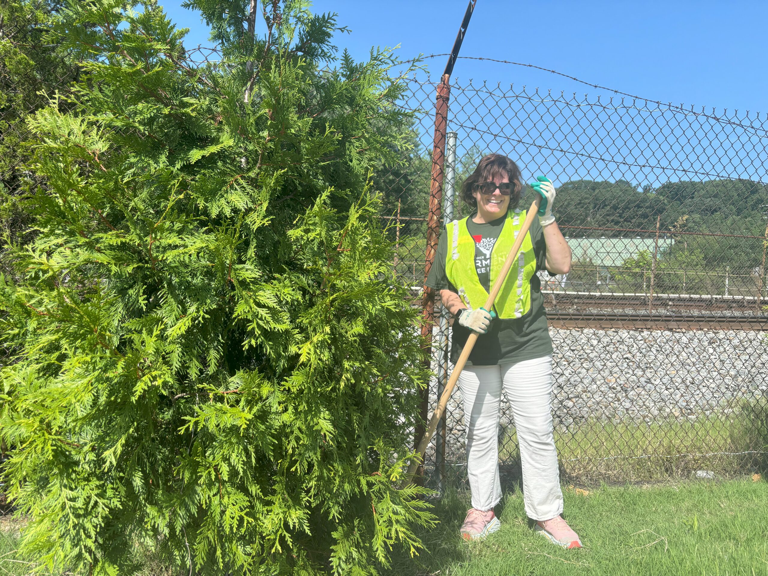 Recently, we held a tree care event with our friends over at CAFB, an essential activity during these hot summer months. Just as CAFB nourishes bodies, our work ensures that the trees planted on their grounds stay healthy and strong, providing shade and environmental benefits for years to come. Volunteers from both organizations joined forces to mulch, water, and care for the trees—crucial steps in ensuring their survival through the summer heat.