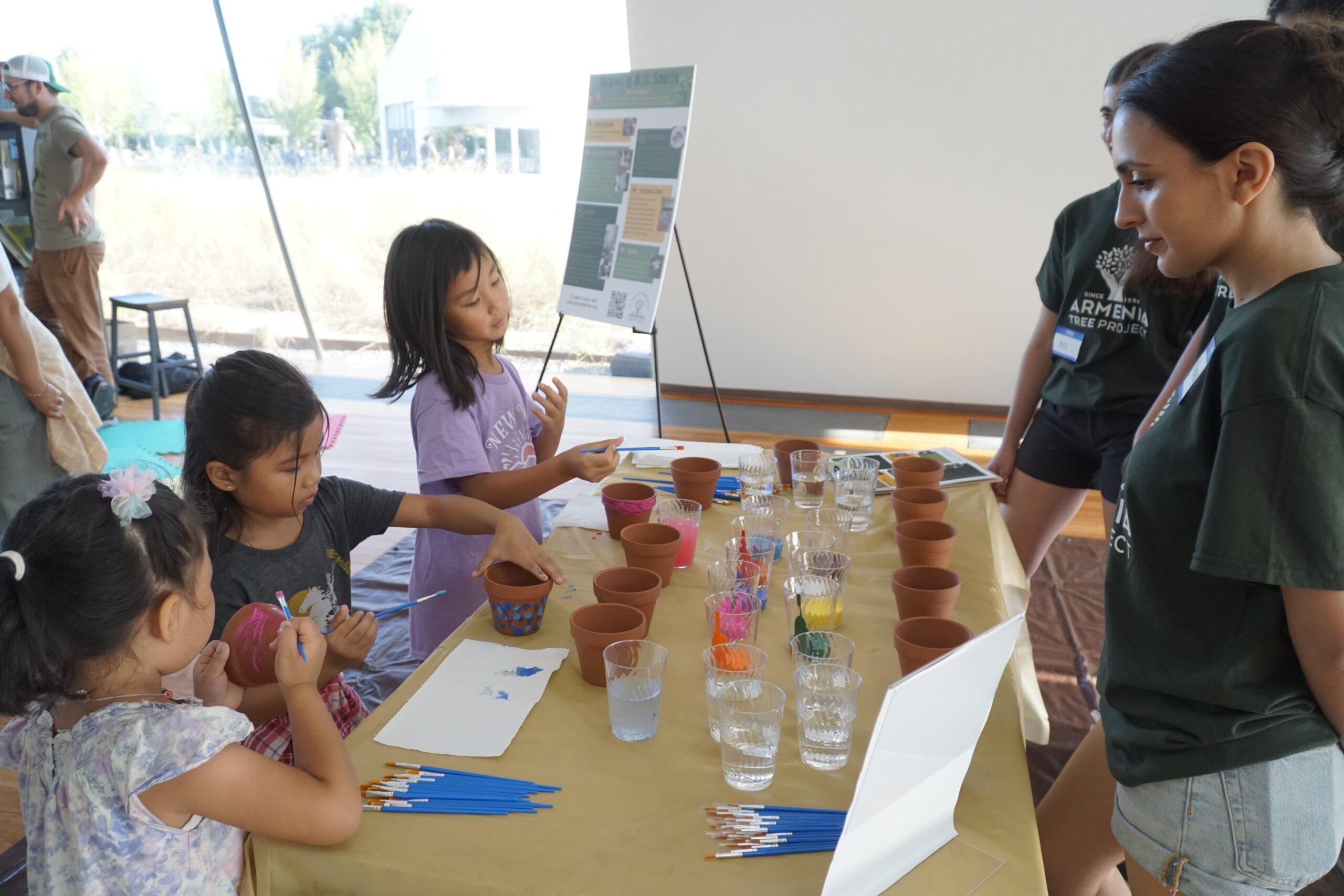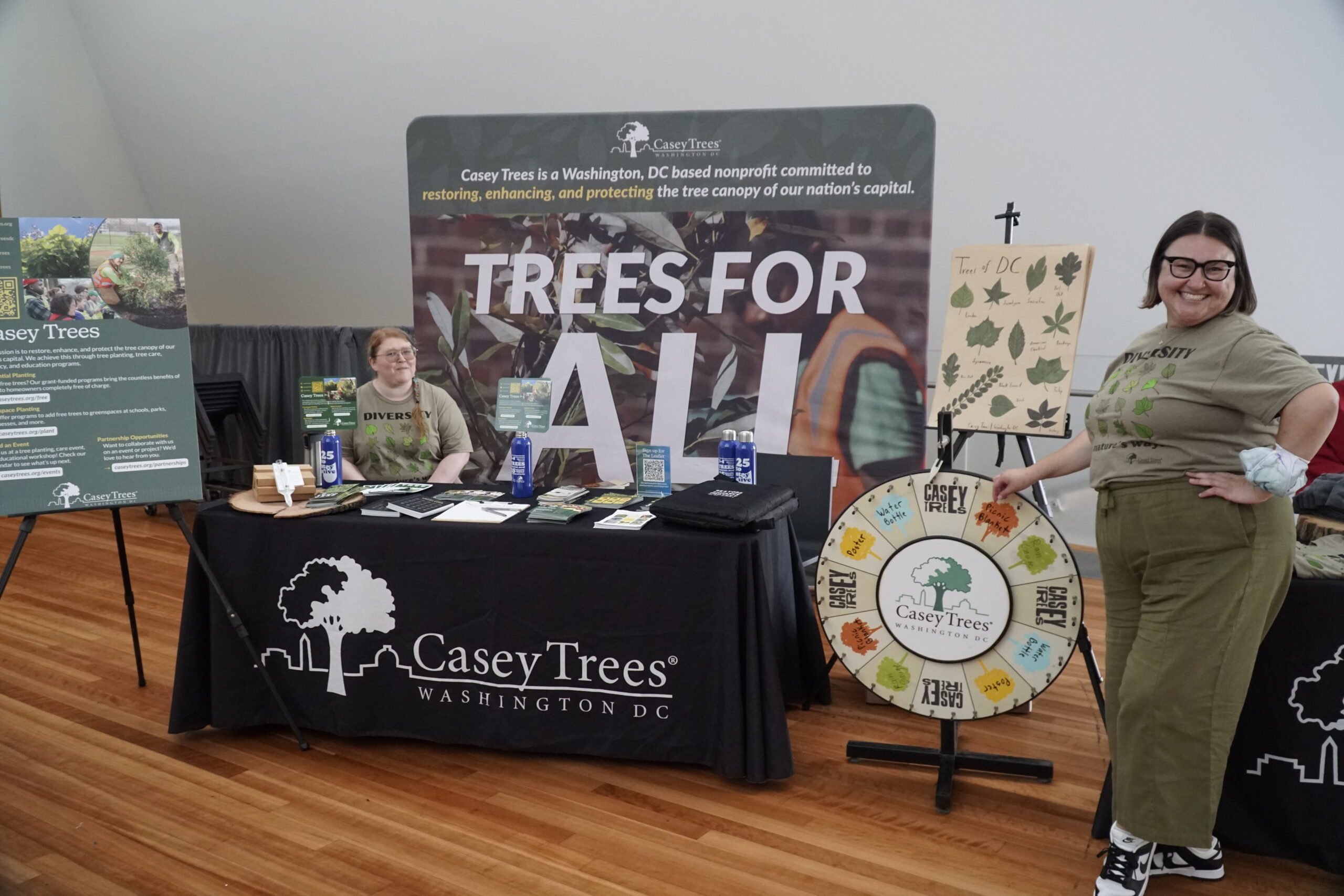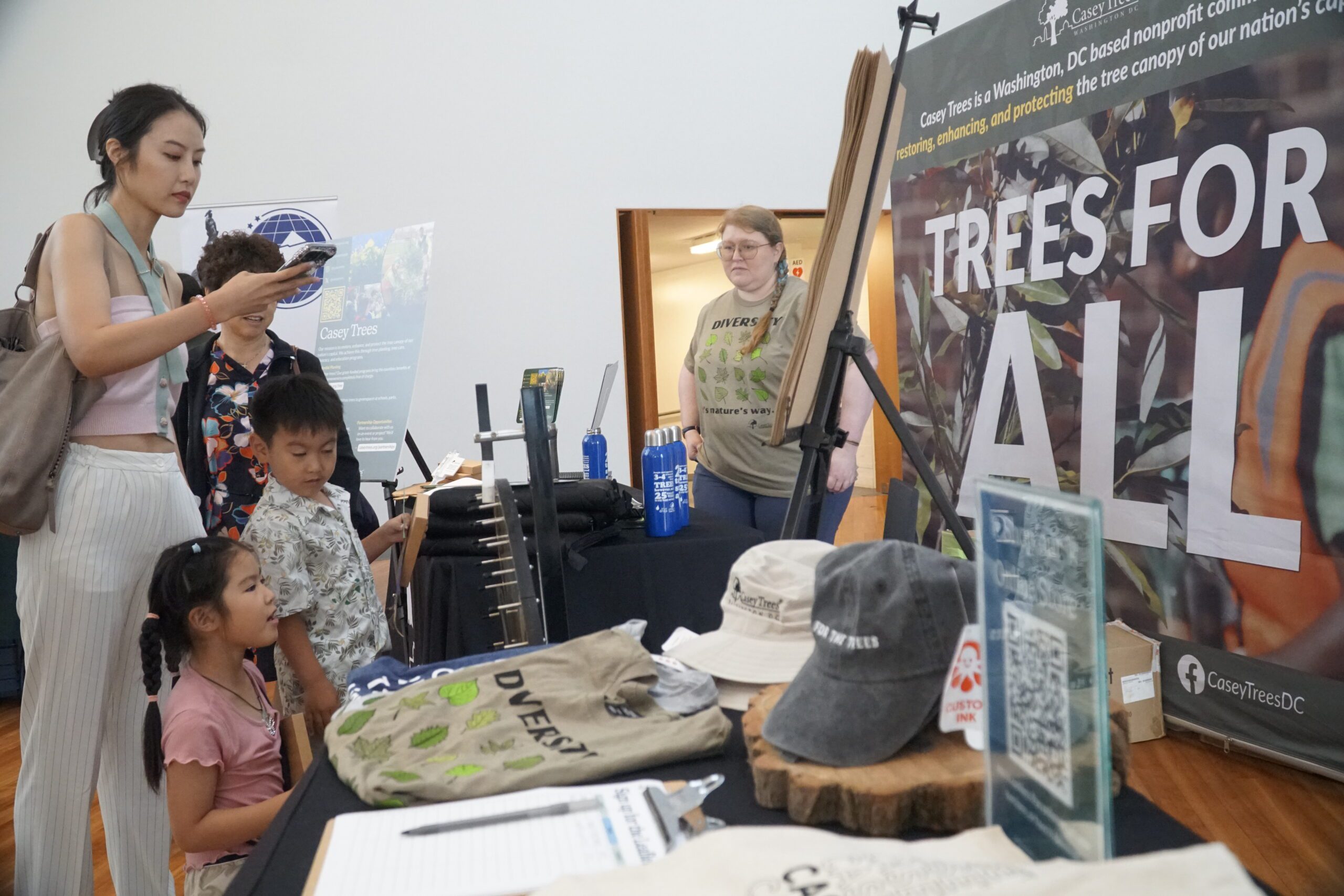Throughout the event, there were various activities for all ages, each offering unique and memorable experiences. At the Casey Trees information table, visitors enjoyed fun giveaways, a spinning wheel, and chatting with us about trees. The Armenia Tree Project (ATP) also shared their amazing initiatives, supported by their energetic staff and interns from the Armenian Assembly of America. Zenith Community Arts Foundation also joined us for the night, sharing information about their mobile woodshop, showcasing their cool programs, and engaging with the crowd.