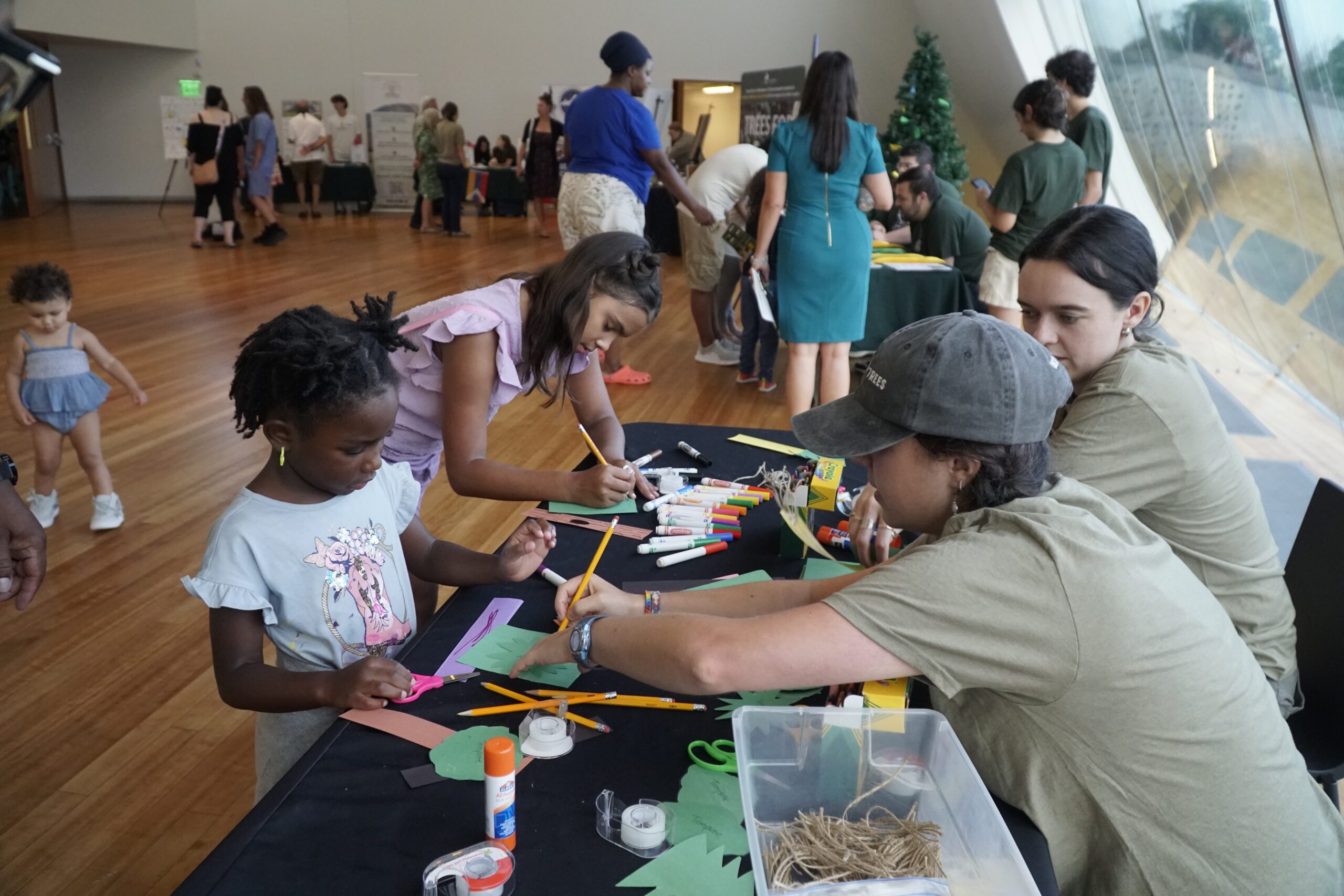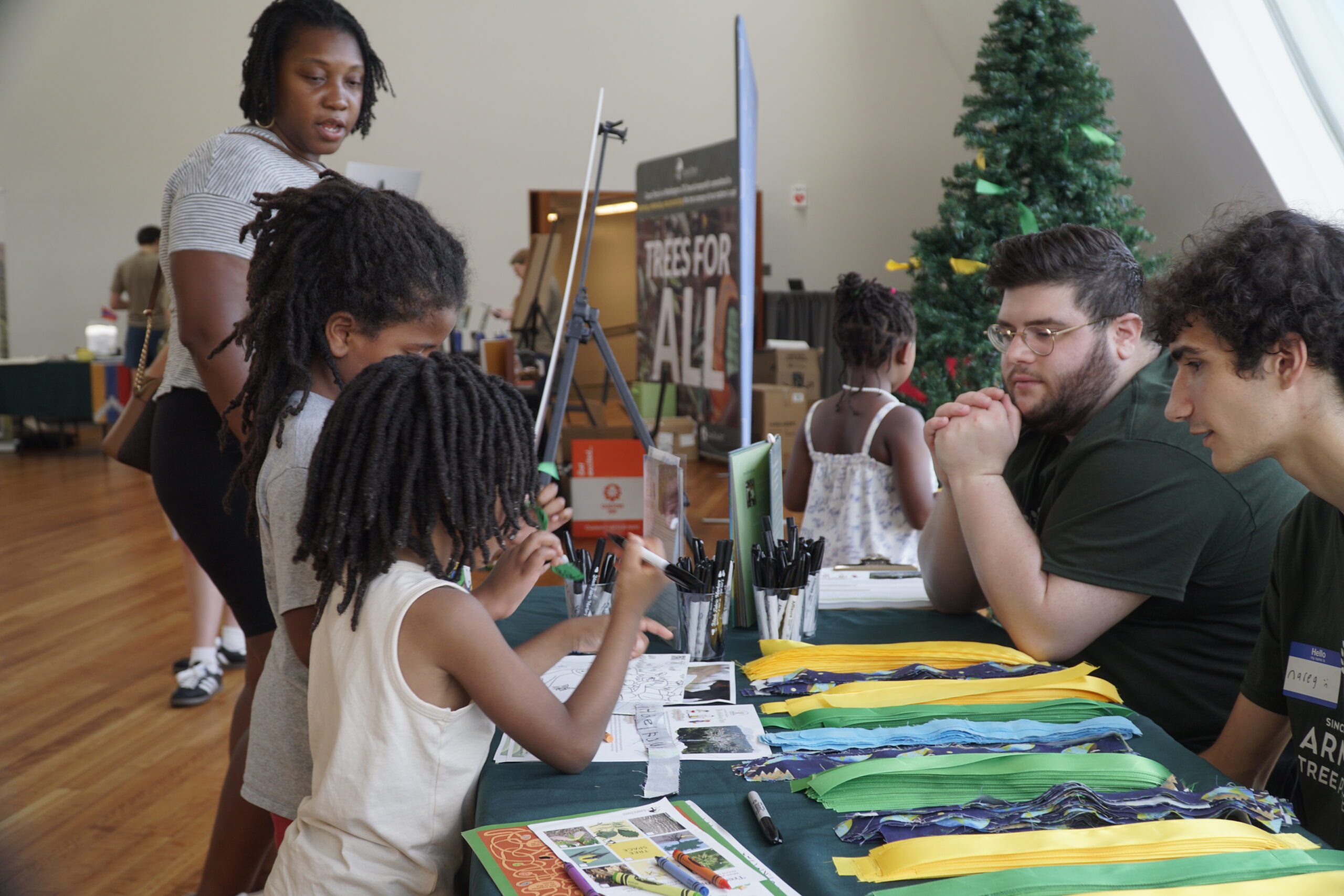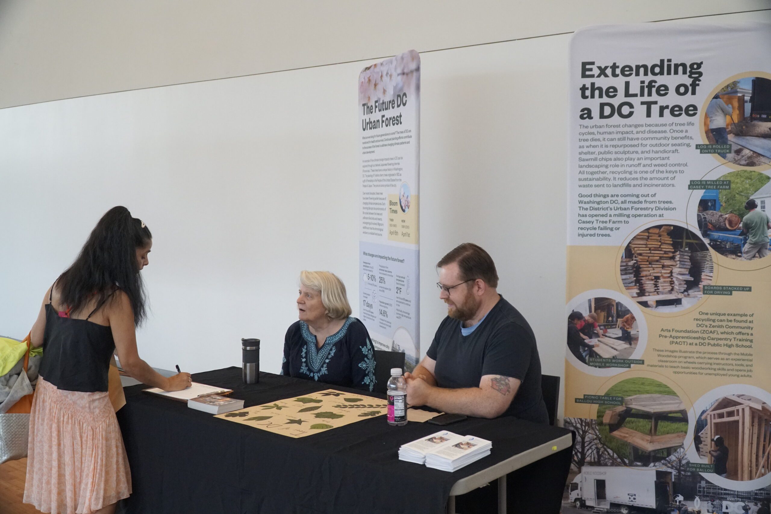 Throughout the event, there were various activities for all ages, each offering unique and memorable experiences. At the Casey Trees information table, visitors enjoyed fun giveaways, a spinning wheel, and chatting with us about trees. The Armenia Tree Project (ATP) also shared their amazing initiatives, supported by their energetic staff and interns from the Armenian Assembly of America. Zenith Community Arts Foundation also joined us for the night, sharing information about their mobile woodshop, showcasing their cool programs, and engaging with the crowd.