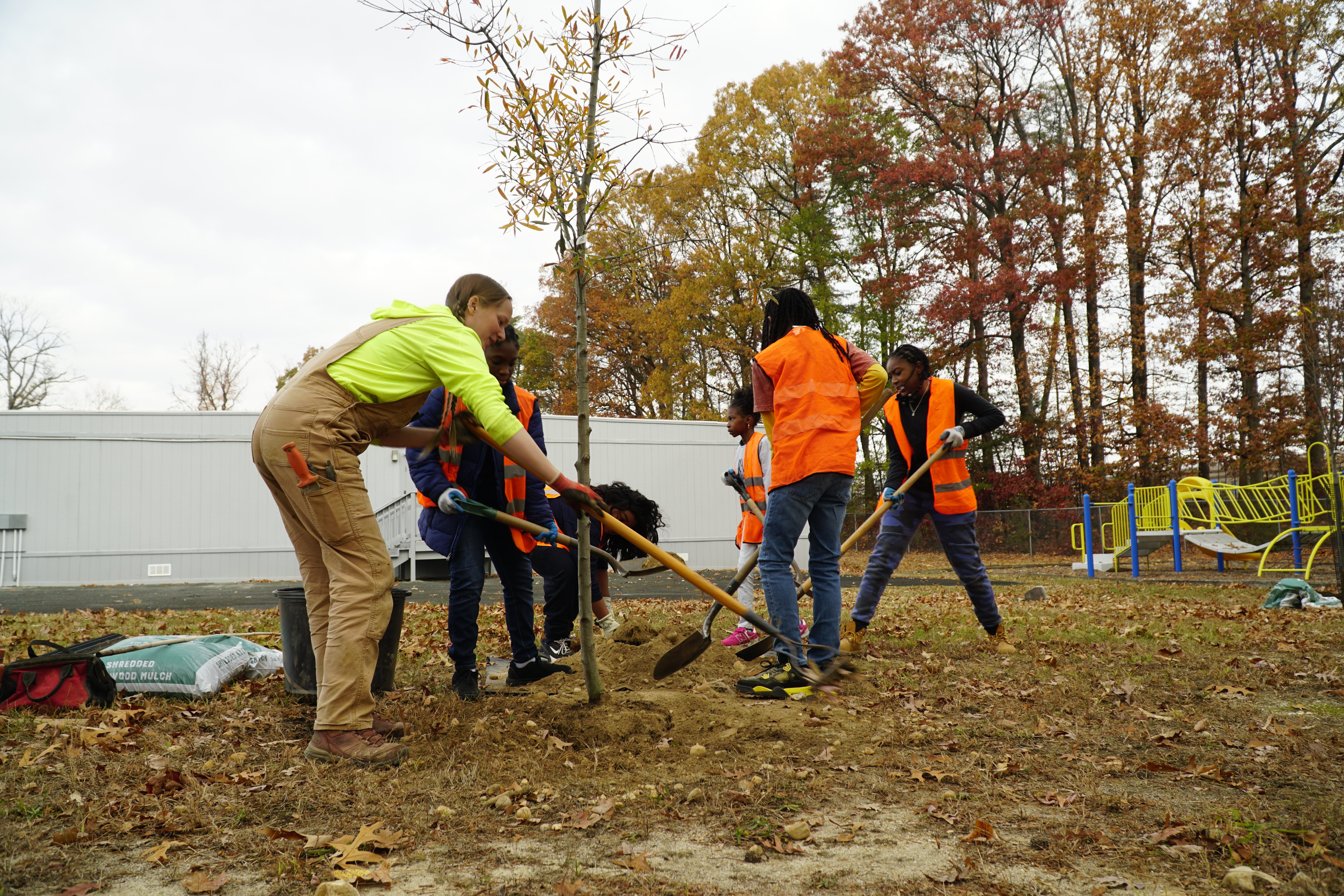 This record-setting planting is just the beginning. Together, we’re transforming schoolyards across the DMV into thriving green spaces that improve the quality of life for students and communities alike. As we look ahead, we encourage everyone from the school to do their part to help care for these trees to ensure they thrive for generations to come. Every tree planted is a step toward a greener, healthier future for all. Schools in Prince George’s County that want to participate in a tree planting with Casey Trees or learn more can submit a form here. Scroll down to enjoy some snapshots from the planting!