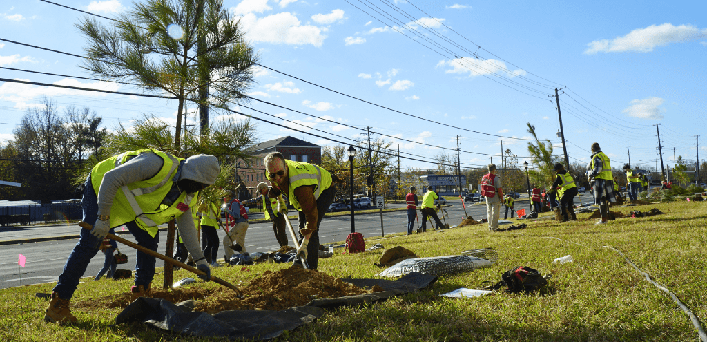 At Casey Trees, we’re thrilled to continue our partnership with the Washington Metropolitan Area Transit Authority (WMATA) to bring lasting environmental benefits to the DC Metro area. This fall, we joined forces with WMATA, local volunteers, and elected officials to plant more than 104 native trees at the Suitland Metro station. This collaboration marks just the beginning of a multi-year effort to improve tree canopy coverage at nine Metro stations, all located in underserved communities.
