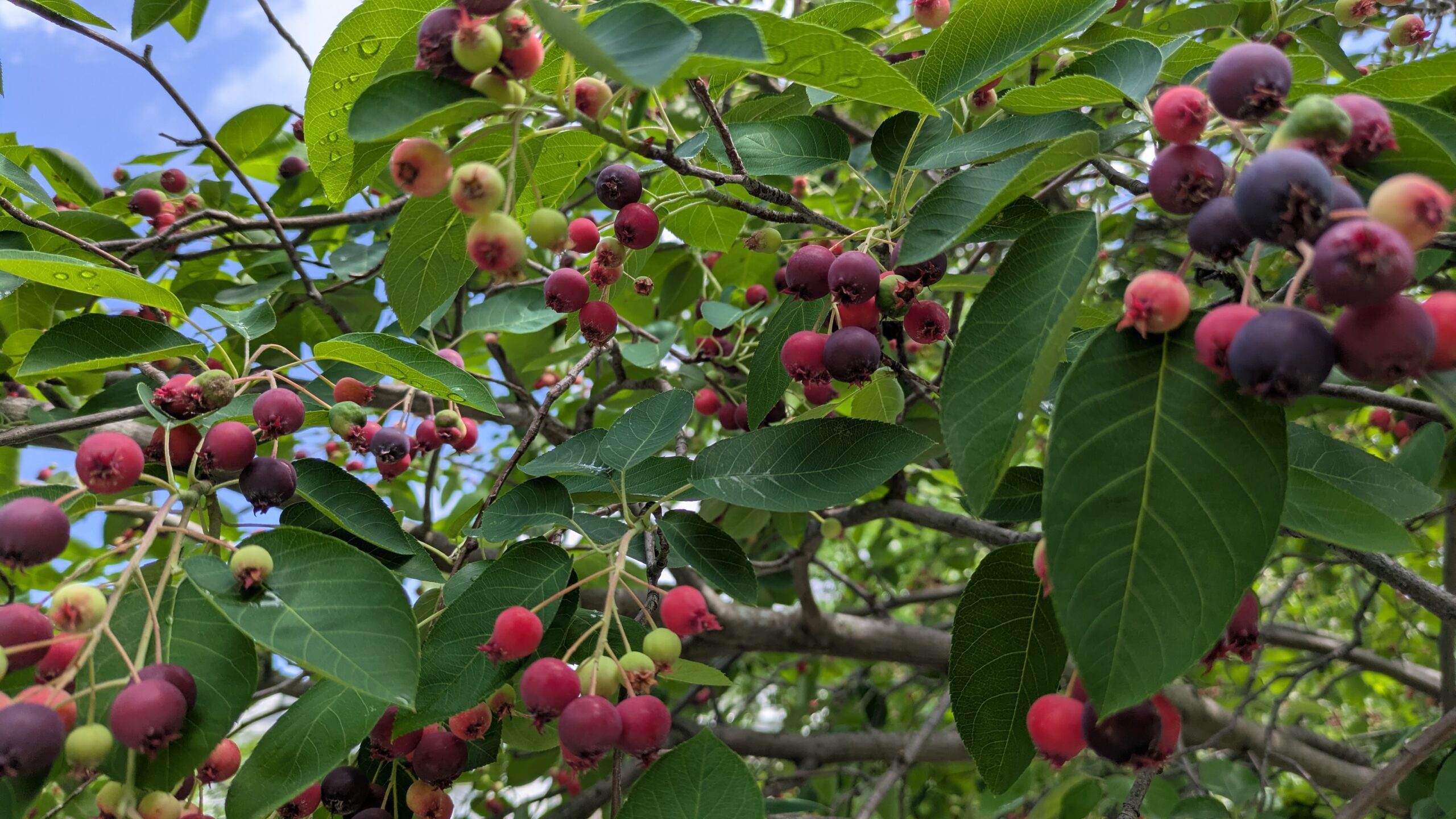 Serviceberries are easy to spot in early spring when white blossoms stand out against bare branches. By late spring to early summer, the berries begin to ripen, transitioning from green to red, and finally to a deep purple or almost black when fully ripe. However, gardeners and foragers should watch for cedar-apple rust, a fungal disease that can affect the berries, especially in wet years or when planted near cedar or juniper trees.