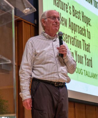 This means that we must address how we approach landscaping, changing our view to prioritize the ecosystem services of plants and animals rather than growing large, pristine lawns. Dr. Tallamy underscored the importance of introducing native species, planting pollinator gardens, and preserving forested areas, thereby minimizing impacts to wildlife and ensuring that we encourage robust food webs and habitats that can reverse the declining biodiversity we see happening on a national and global scale. From the smallest caterpillars to the tallest oaks, Dr. Tallamy emphasized that all creatures and places have ecological significance, empowering the audience to see themselves and others as nature’s best hope.