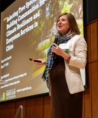 Rounding out the panel, Mia Rothberg of the Montgomery County Planning Department highlighted the role of legislation in shaping conservation programs. From the state’s Forest Conservation Act to the county’s Forest Conservation Law, these policies fund reforestation and tree planting programs that preserve forests and meet mitigation goals.