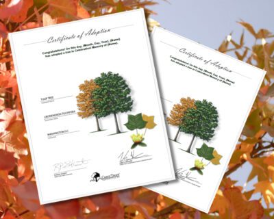 Interested in honoring a tree-lover but can’t sponsor a newly planted tree? Our symbolic tree adoptions are a great way to show your love and appreciation while making an impactful difference. Each adoption supports Casey Trees’ tree planting and education programs, including a symbolic tree (your choice of tuliptree, Yoshino cherry, London planetree, dawn redwood, or red maple) and a commemorative Certificate of Adoption for the honoree. And like our tree dedication, a symbolic tree adoption is an excellent gift in a time crunch, as we’ll send you the certificate to print at home.