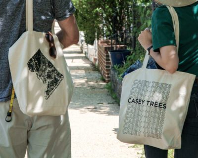 Of course, you need a bag to carry around your new species guide! Our canvas tote bag is a perennial favorite, made with sturdy, environmentally friendly materials to support you year-round. Sporting a map of DC’s tree canopy, this bag lets everyone around you in Trader Joe’s know that you’re serious about re-treeing the District. Better yet, our tote features longer straps, essential for slinging a bag over a thick winter coat without slipping off your shoulder (if you know, you know).