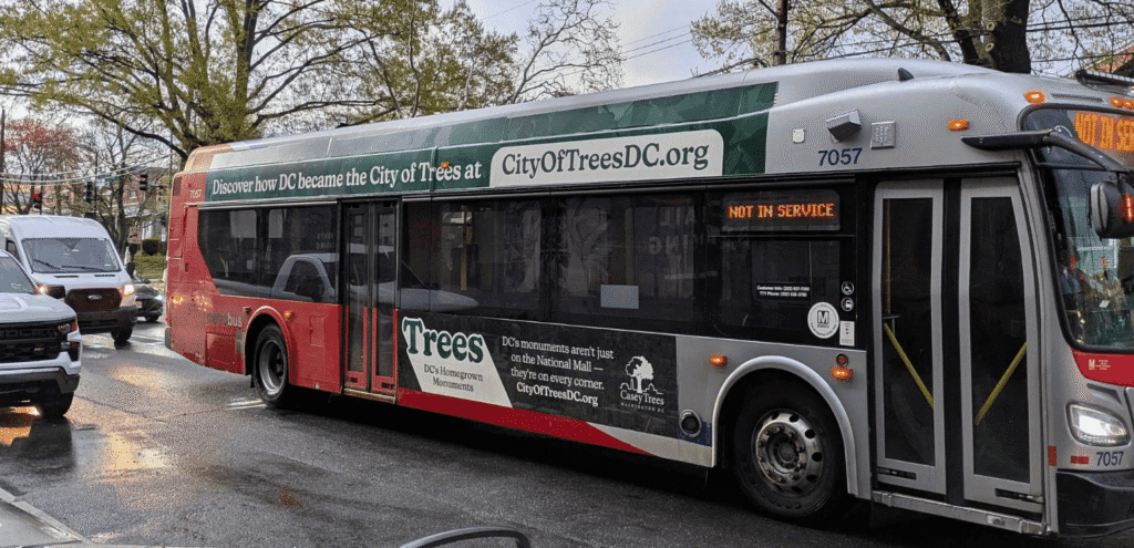To celebrate our city’s green legacy, we’ve plastered it on buses and metro stops all over the city now through June. Our goal is to remind DC residents that we are The City of Trees — and our mission is to keep it that way.