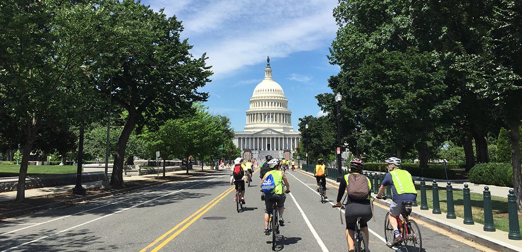 Last weekend Casey Trees volunteers, members, bikers, and tree enthusiasts joined us for a tree tour on wheels to our nation’s Capitol. Nearly thirty bikers in neon vests hit the road to learn more about the trees planted on the Capitol grounds. Lucky for us, we had an expert with us. Melanie Choukas-Bradley, author of City of Trees and A Year in Rock Creek Park, was able to answer all of our tree-related questions. No stranger to Casey Trees and our work, she has led many a tree tour with us, including one of the National Gallery of Art!