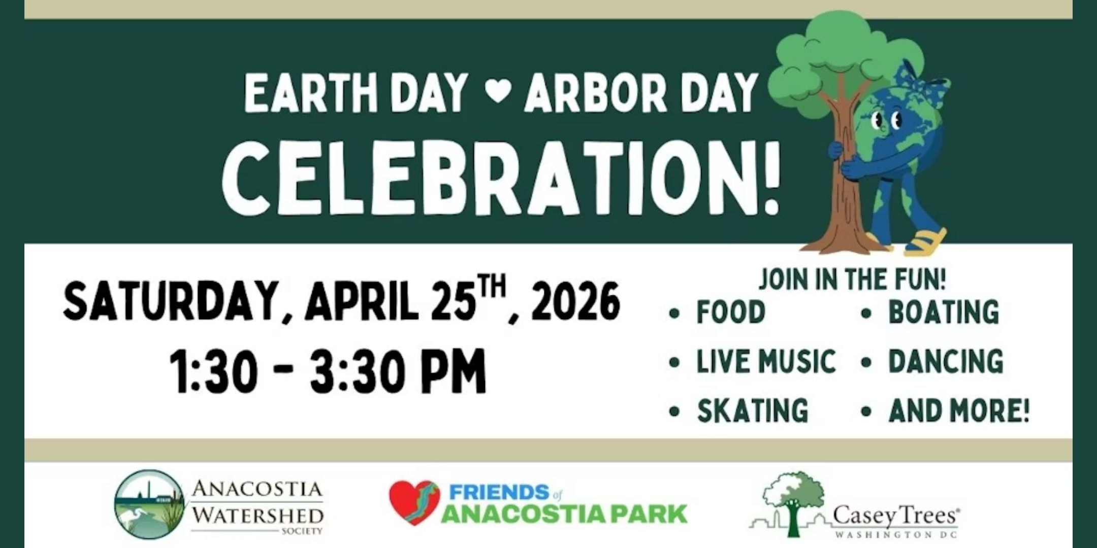 Join the Anacostia Watershed Society, Friends of Anacostia Park, and Casey Trees for a fun afternoon of community fellowship, celebrating Earth and the trees that help take care of us in Anacostia Park (by the Aquatic Resources Education Center & Skating Pavilion)!